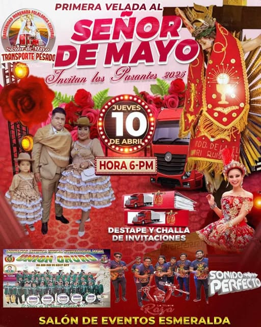 Los prestes 2025, Sr. Álvaro Alvarez, Sra. Bárbara Quisbert e hijas. invitan a la festividad del Señor de Mayo a efectuarse el miércoles 30 de abril del 2025 desde las 15:00 horas…